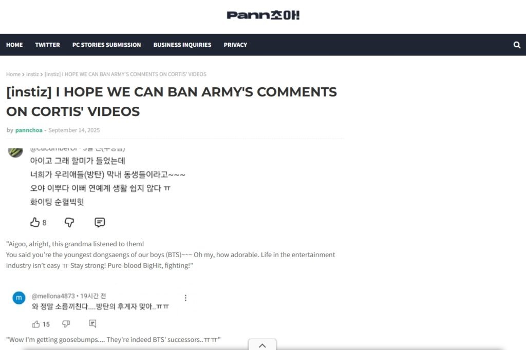 Hey ARMY, looks like we’re the talk of Instiz again—but not for streaming stats or record-breaking charts. Some netizens are calling to ban—or at least mute—ARMY comments under the rookie group CORTIS’ videos. Why? Because apparently, we can’t help ourselves—we mention BTS everywhere, even when CORTIS is performing their own thing.